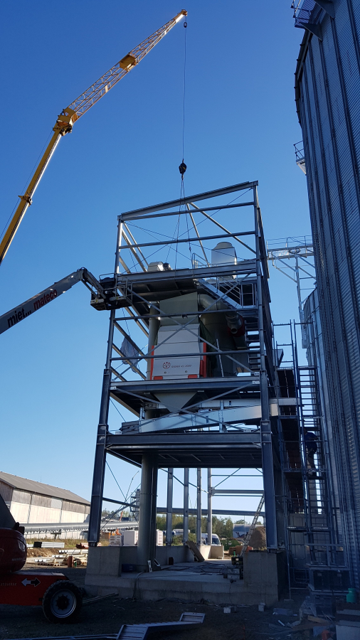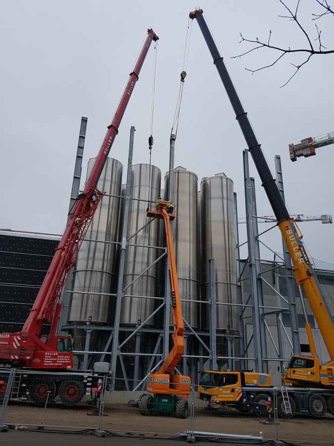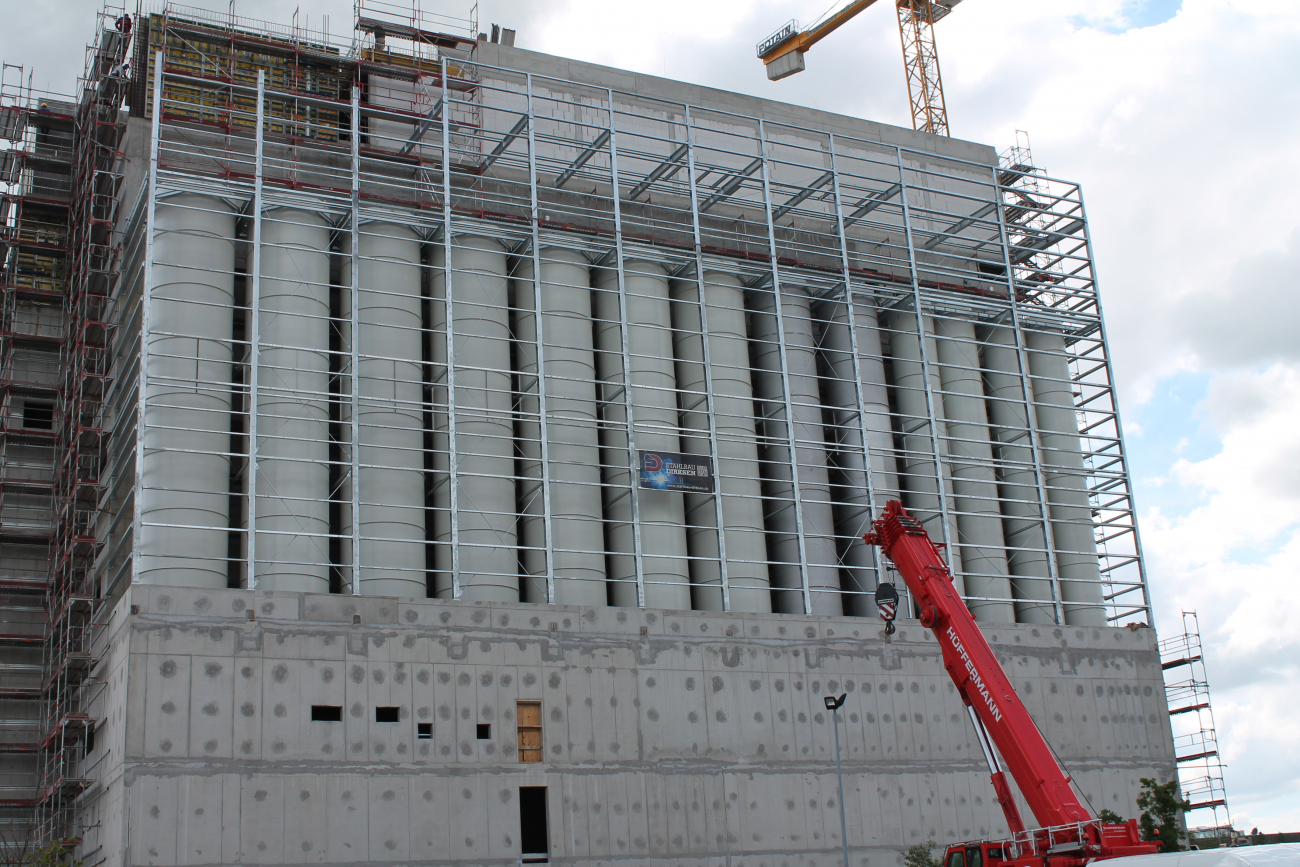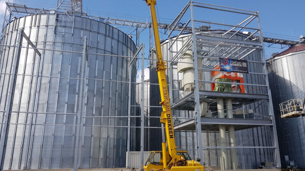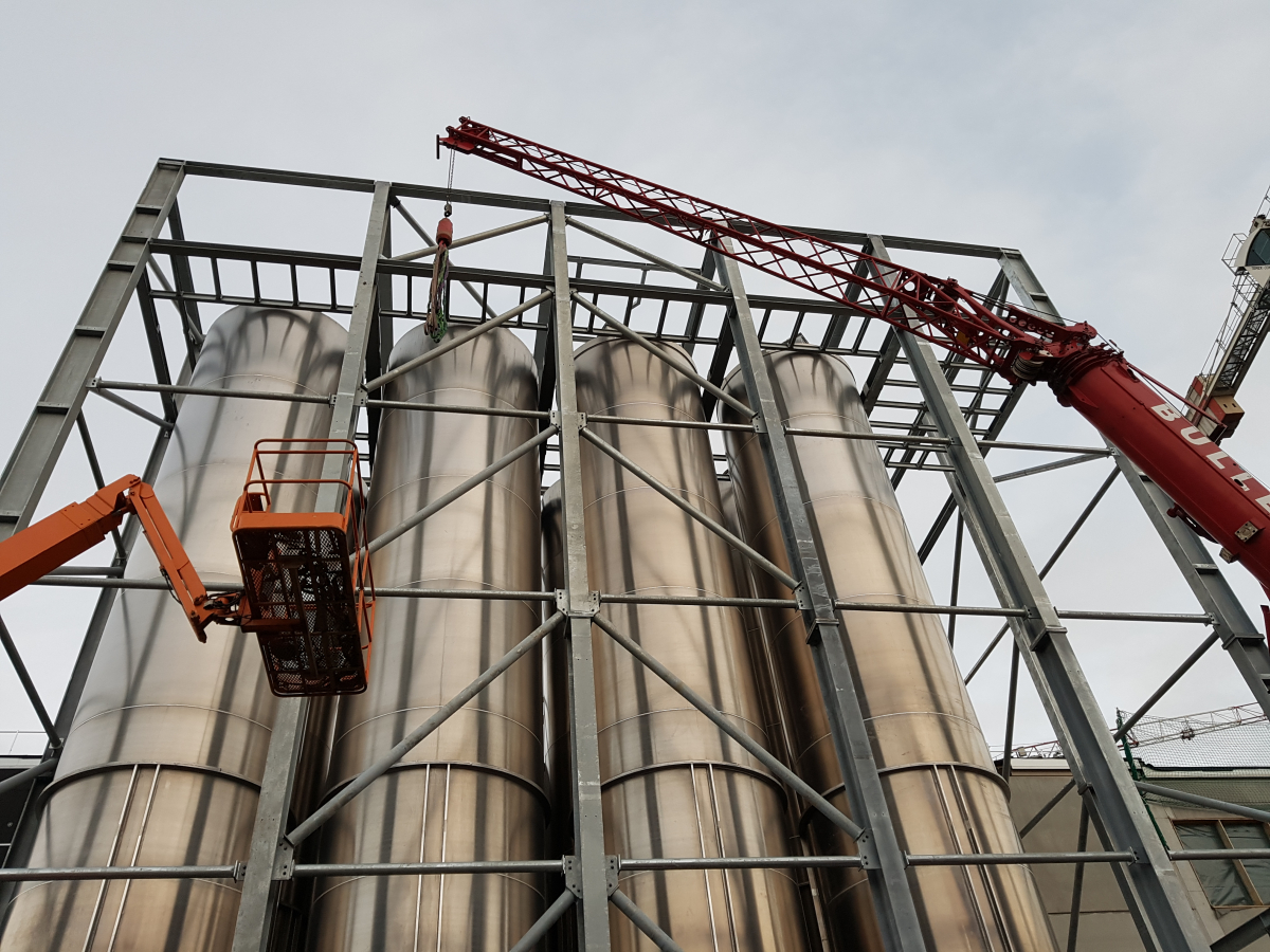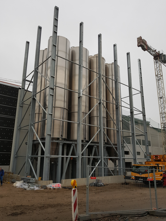Beauftragt wurden Werk- und Montageplanung, Fertigung, Lieferung und Montage einer Stahlkonstruktion als Einhausung von Silos. Auch der Silotisch, als Unterkonstruktion der Silotanks gehörten zum Leistungsumfang, ebenso eine Treppenanlage im Innen sowie Laufstege und ein Tränenblech-Belag oberhalb der Silos. Alle Stahlkonstruktionsteile wurden feuerverzinkt.