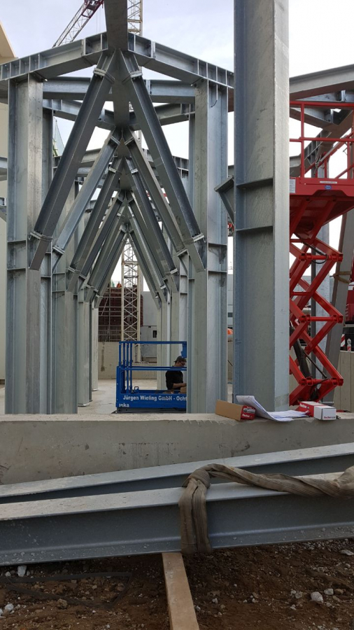 Stahlkonstruktion eines Eingangsbereiches für einen Verbrauchermarkt in beschichteter Ausführung